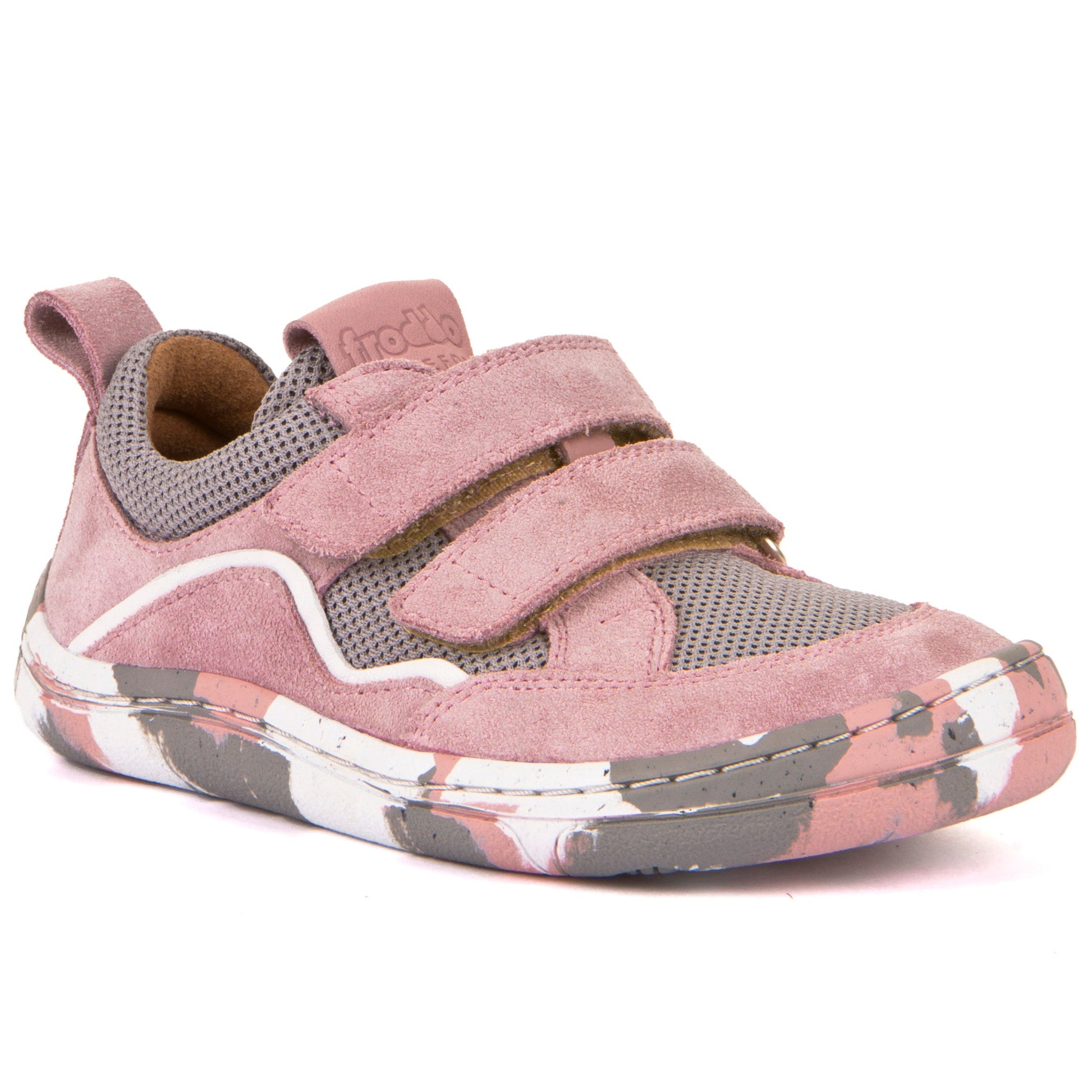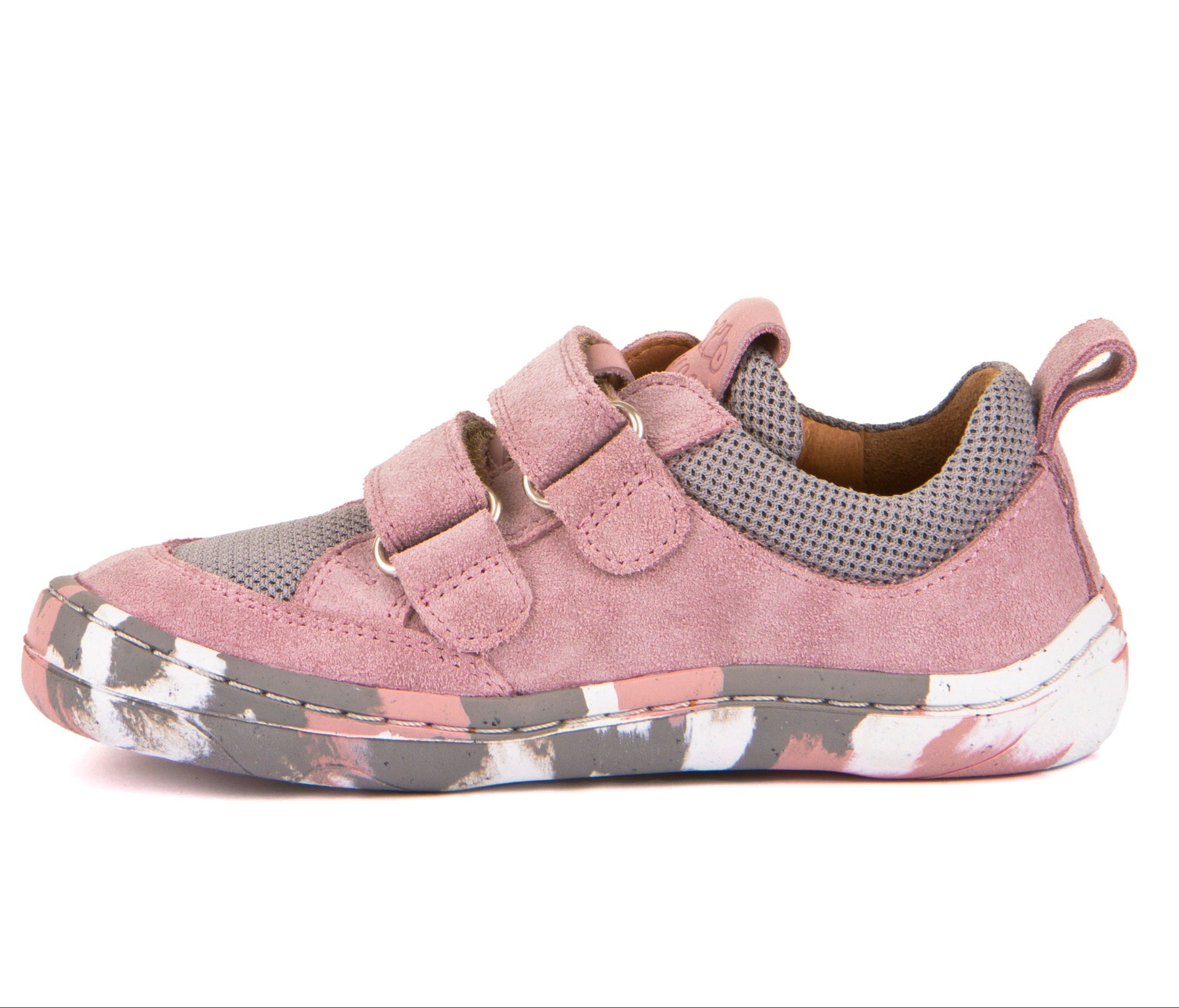 Barefoot D-Velcro Leather & Mesh shoes in Grey/Pink