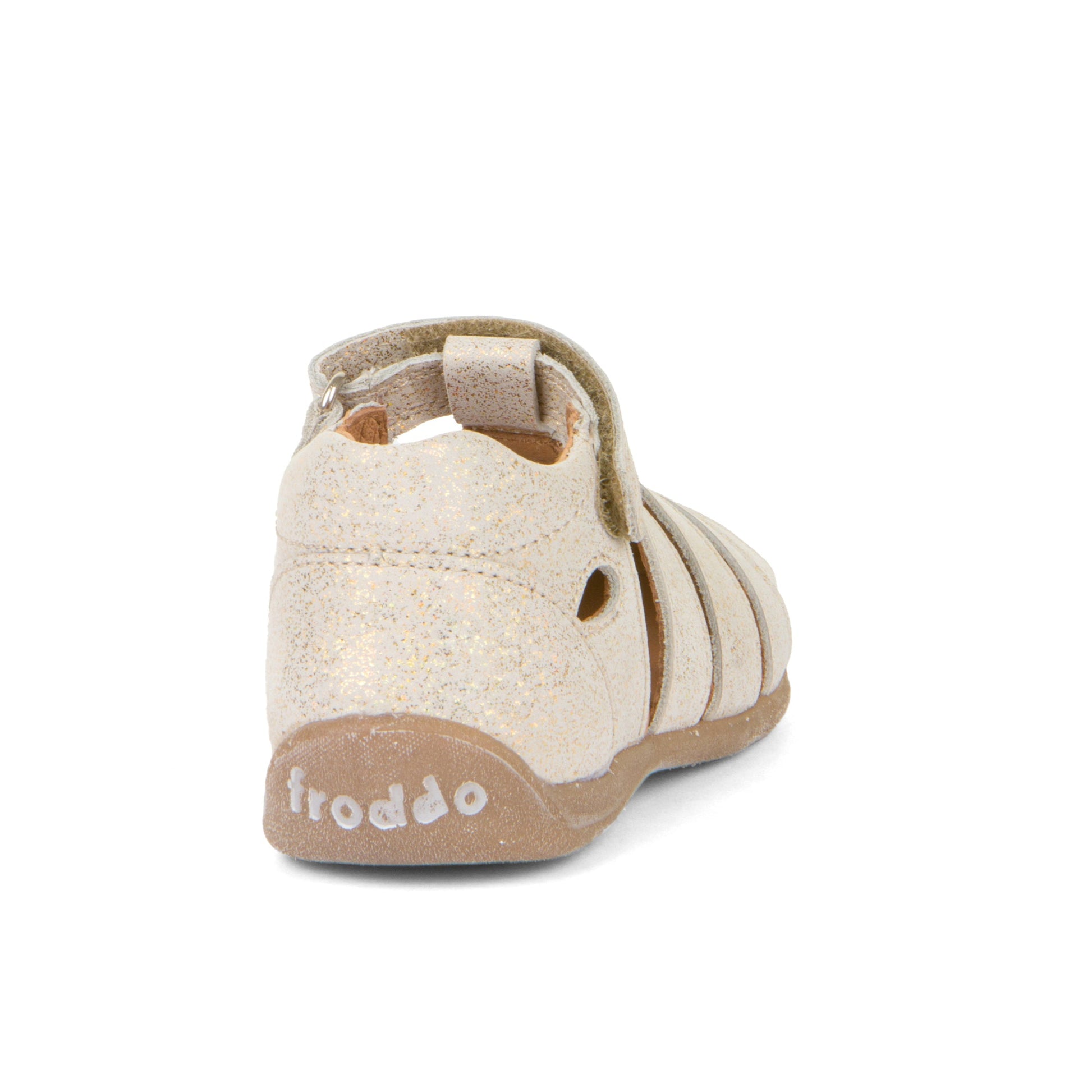 The Froddo Carte U Sandal is a lightweight, closed-toe sandal made from high-quality, vegetable-tanned leather. It features a flexible thermo rubber sole for great grip and comfort. The adjustable Velcro strap and hidden elastic band across the foot ensure a secure, customizable fit, ideal for medium-width feet.