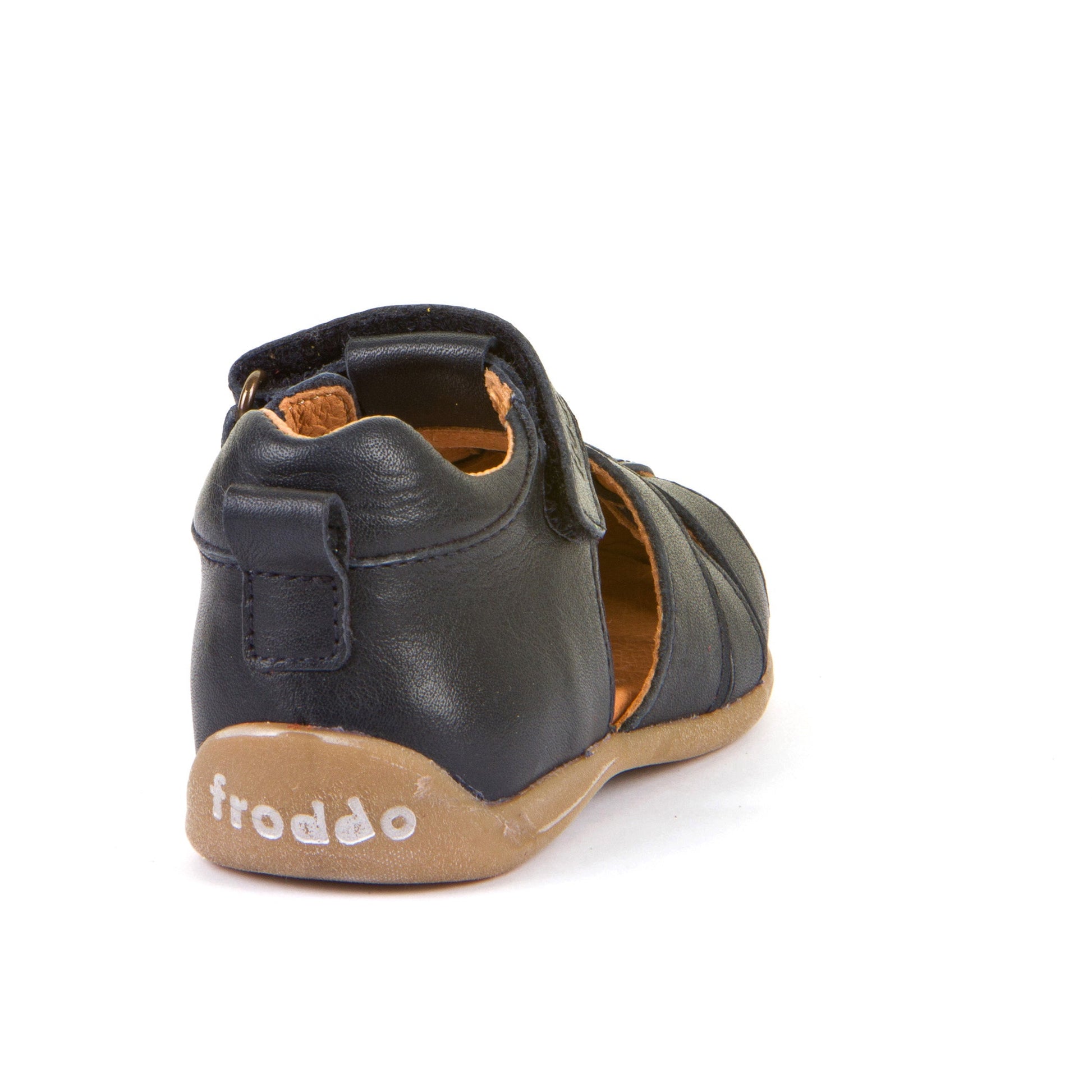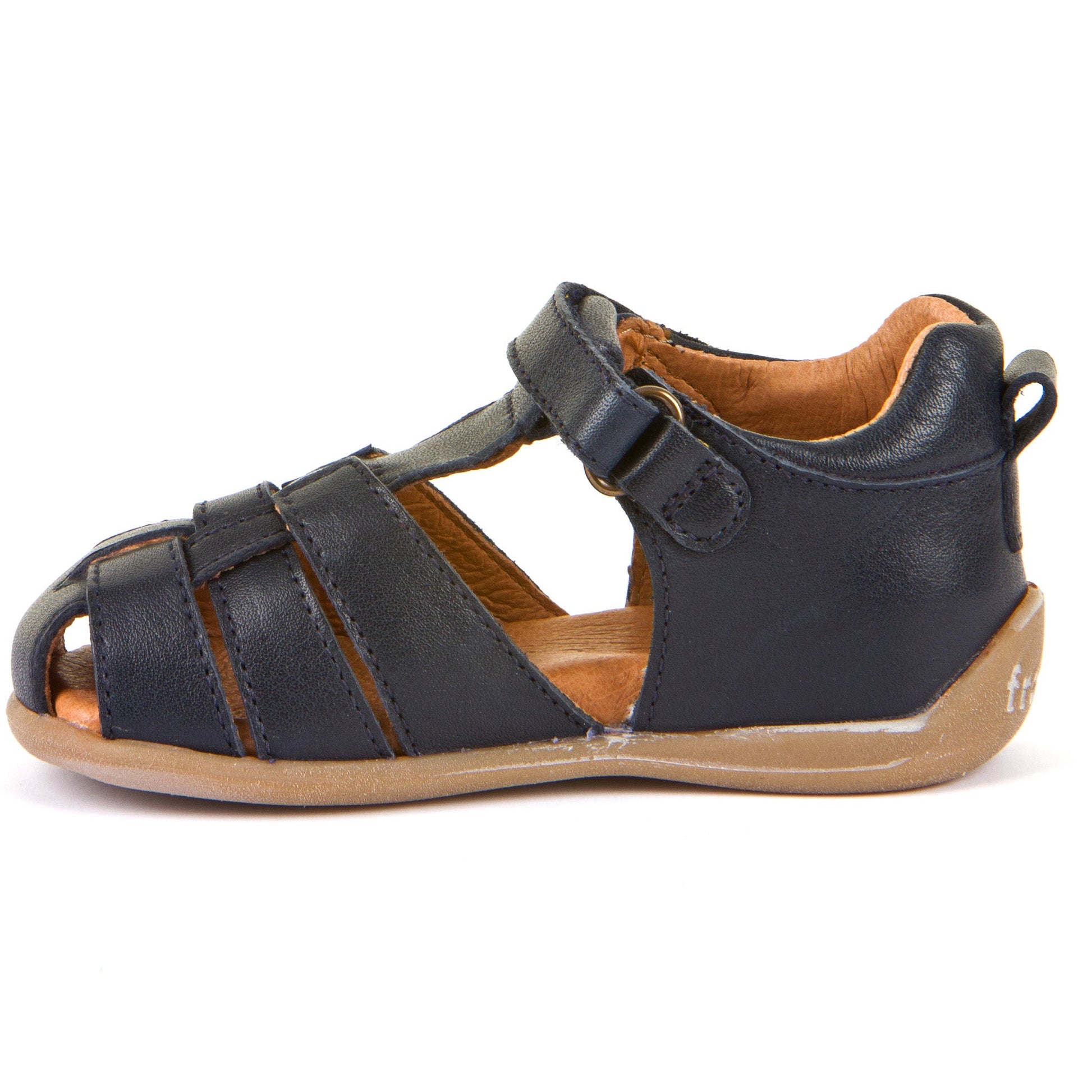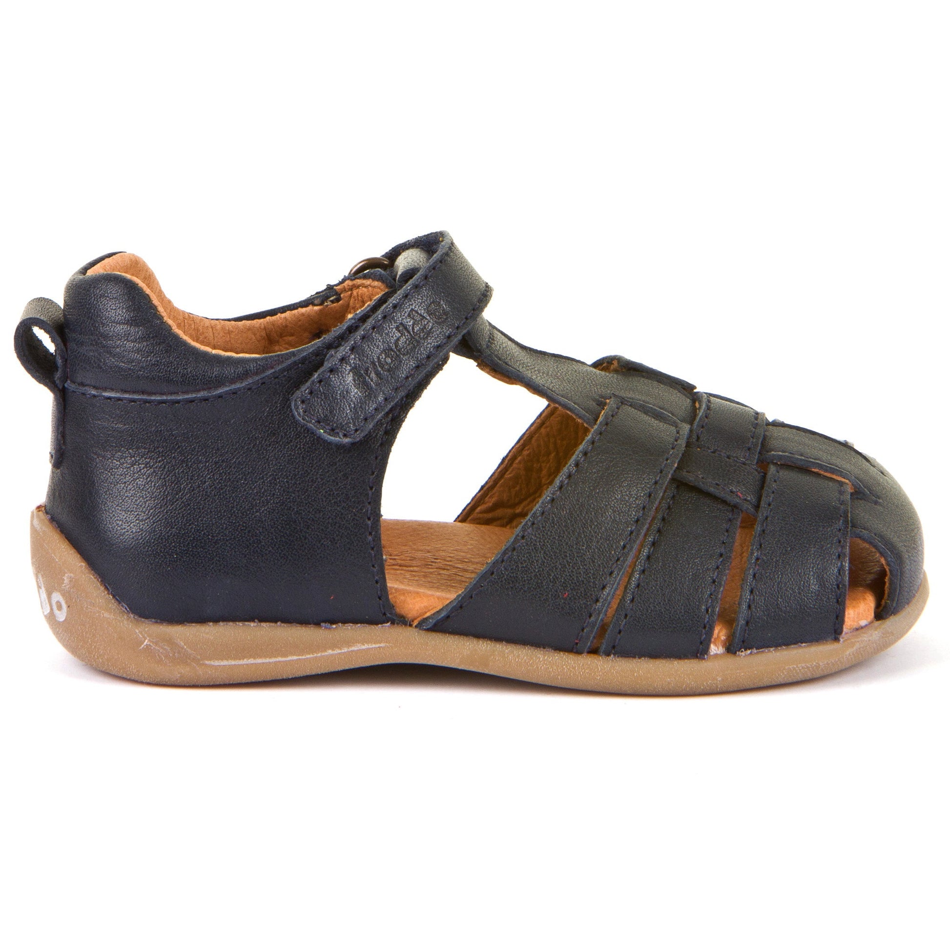 The Froddo Carte U Sandal is a lightweight, closed-toe sandal made from high-quality, vegetable-tanned leather. It features a flexible thermo rubber sole for great grip and comfort. The adjustable Velcro strap and hidden elastic band across the foot ensure a secure, customizable fit, ideal for narrow to medium-width feet.