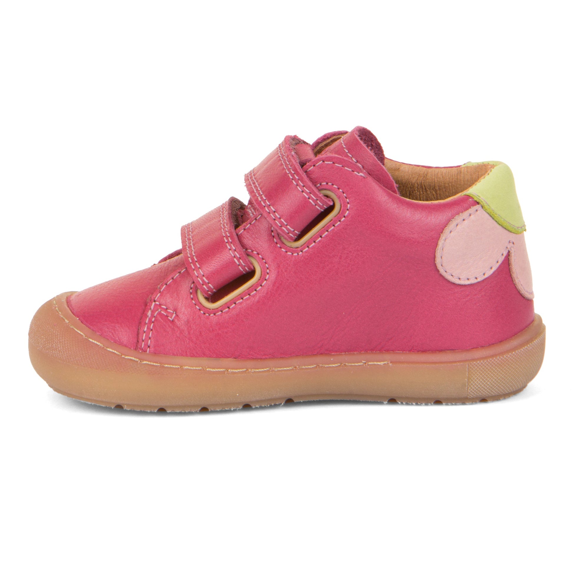 These shoes feature a removable antibacterial insole that gently supports the arch and promotes healthy foot development. Crafted from natural materials, they offer breathability and a comfortable climate for all-day wear. The design includes added toe protection and a stabilizing heel to prevent ankle twisting. The convenient Velcro fastening allows for an adjustable, secure fit and easy on-and-off wear, blending practicality with style.