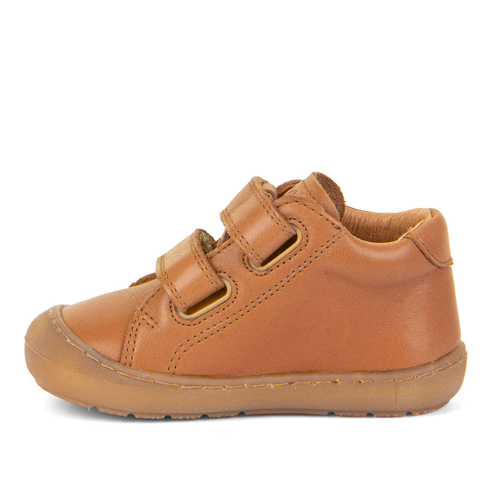 These shoes feature a removable antibacterial insole that gently supports the arch and promotes healthy foot development. Crafted from natural materials, they offer breathability and a comfortable climate for all-day wear. The design includes added toe protection and a stabilizing heel to prevent ankle twisting. The convenient Velcro fastening allows for an adjustable, secure fit and easy on-and-off wear, blending practicality with style.