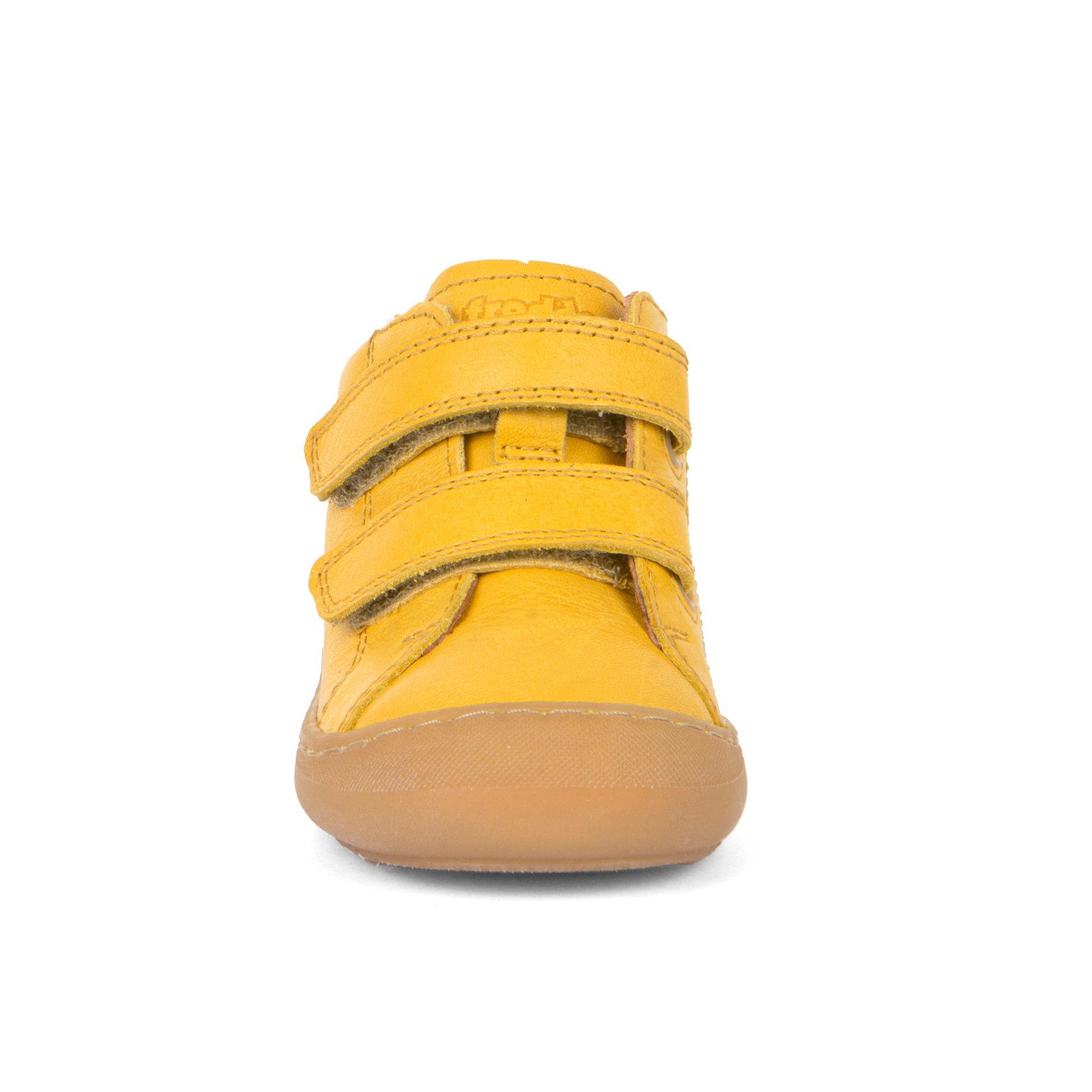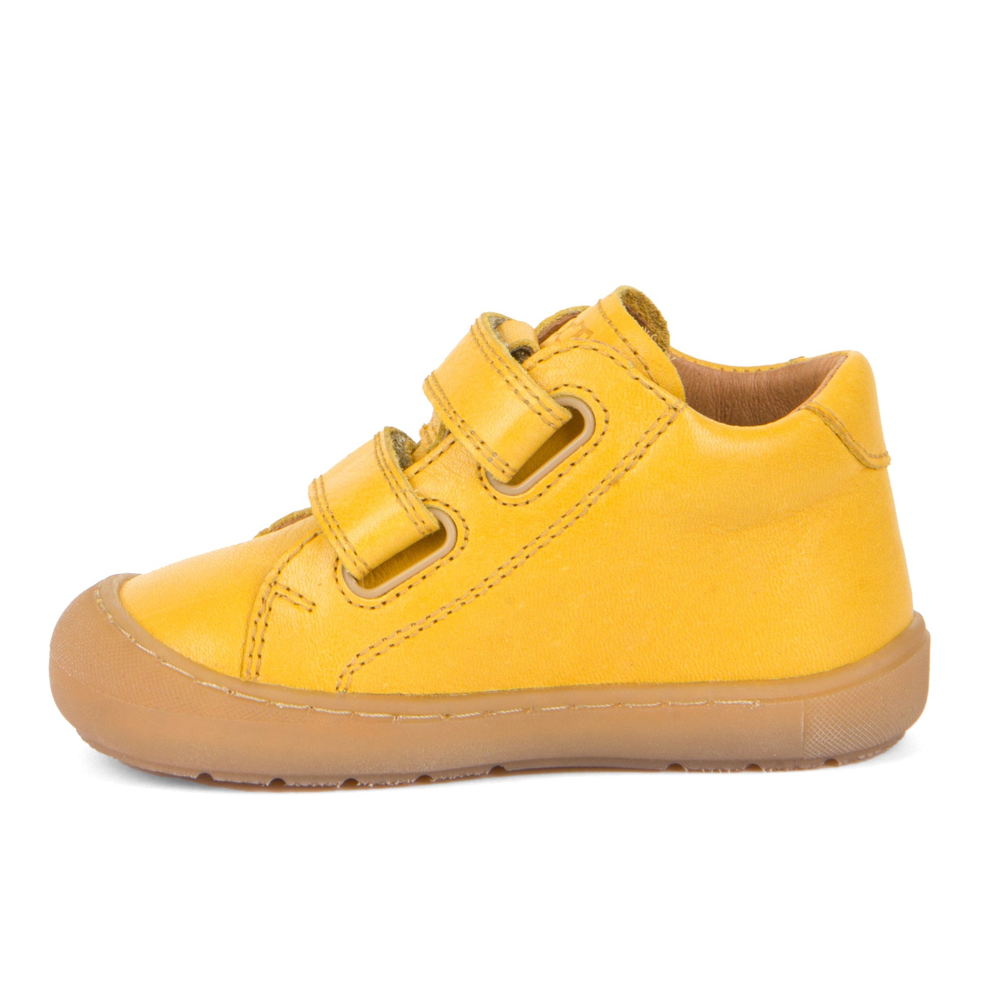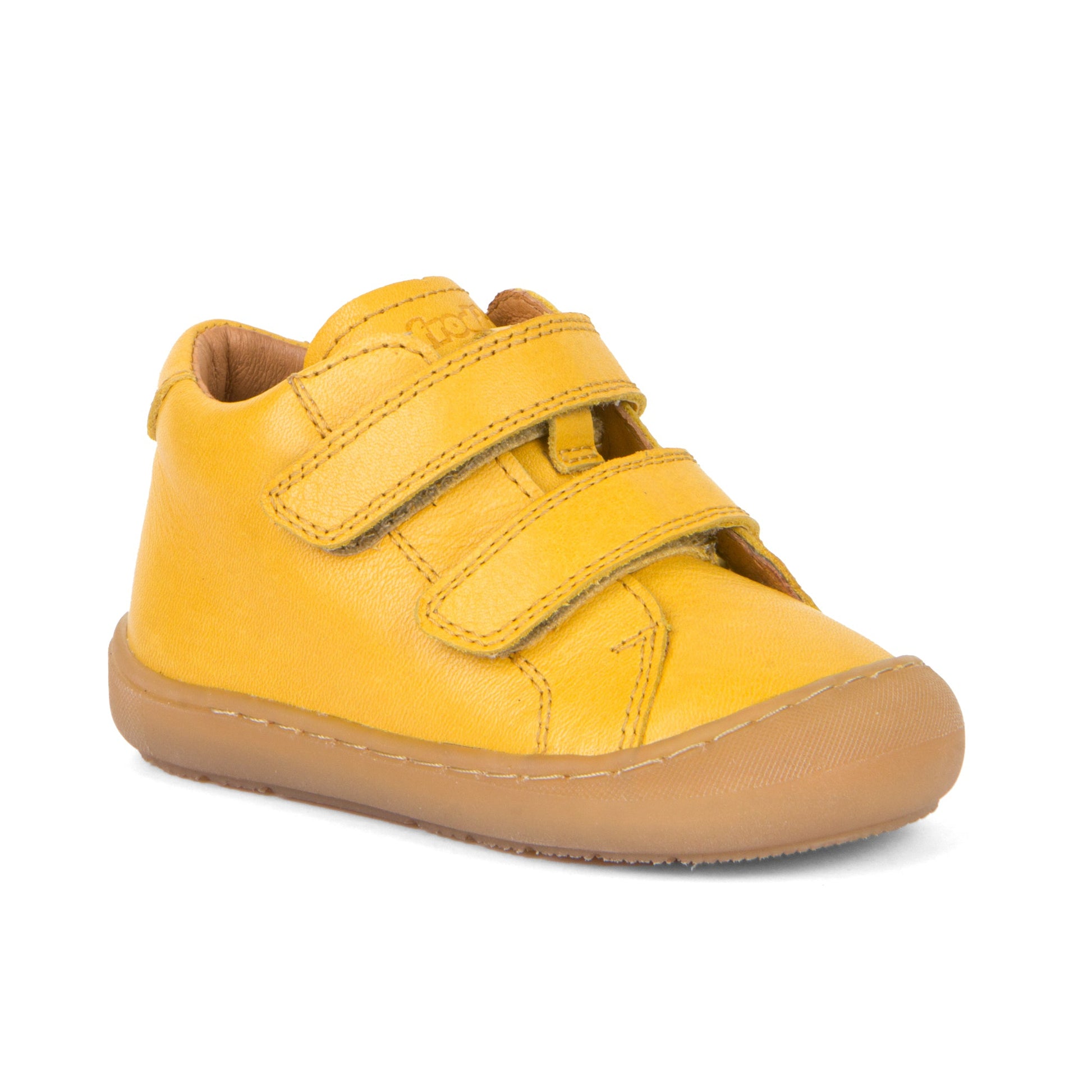 These shoes feature a removable antibacterial insole that gently supports the arch and promotes healthy foot development. Crafted from natural materials, they offer breathability and a comfortable climate for all-day wear. The design includes added toe protection and a stabilizing heel to prevent ankle twisting. The convenient Velcro fastening allows for an adjustable, secure fit and easy on-and-off wear, blending practicality with style.