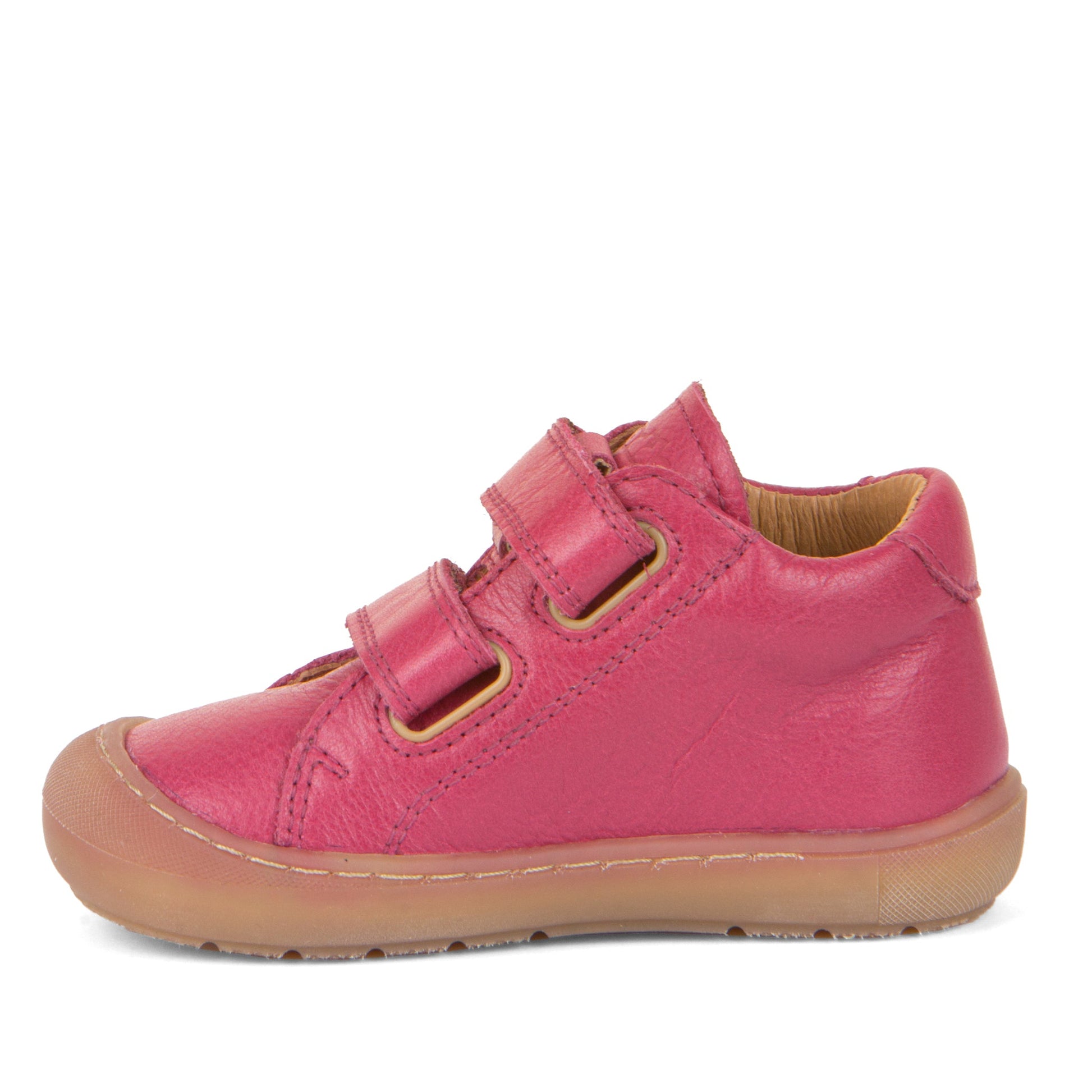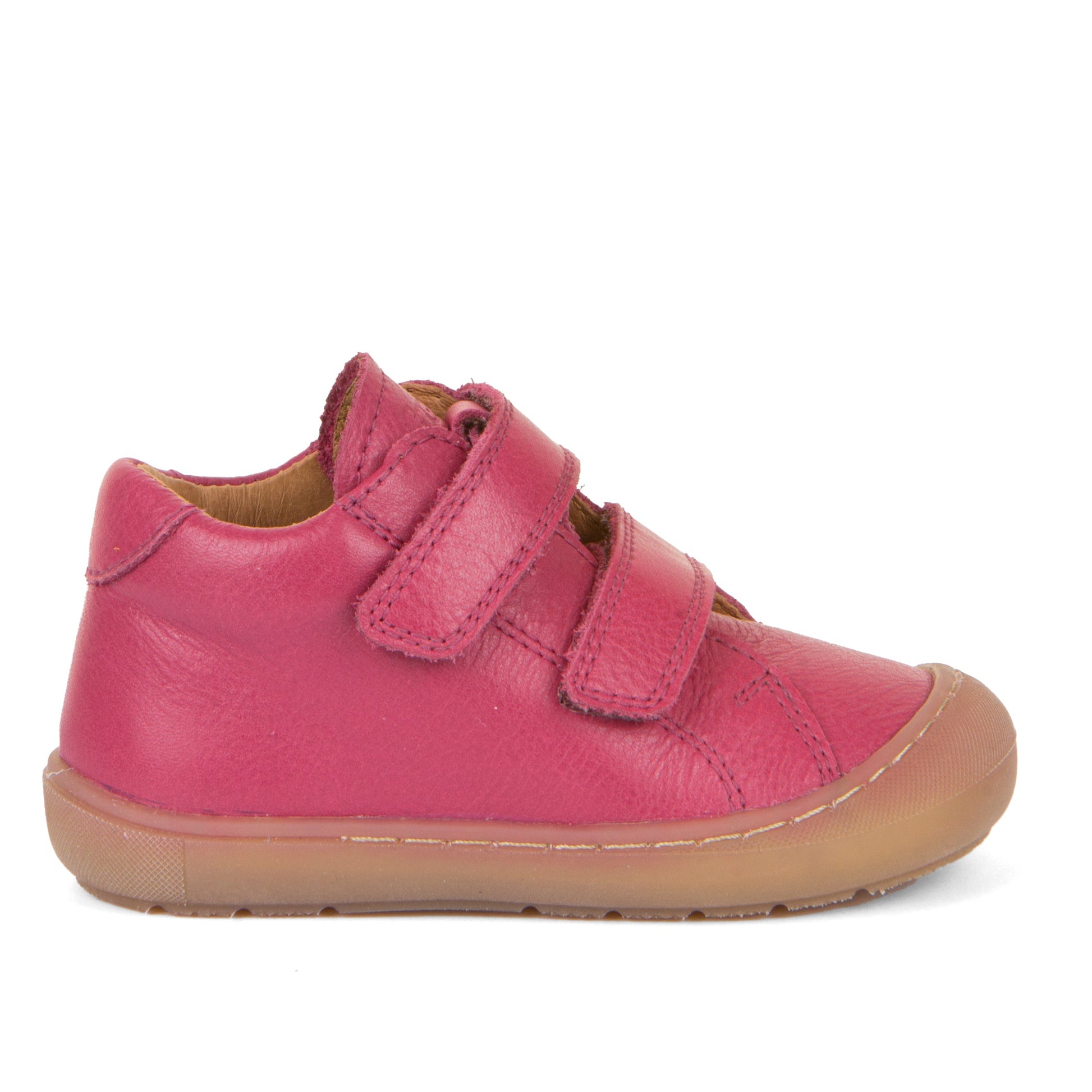 These shoes feature a removable antibacterial insole that gently supports the arch and promotes healthy foot development. Crafted from natural materials, they offer breathability and a comfortable climate for all-day wear. The design includes added toe protection and a stabilizing heel to prevent ankle twisting. The convenient Velcro fastening allows for an adjustable, secure fit and easy on-and-off wear, blending practicality with style.